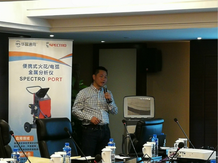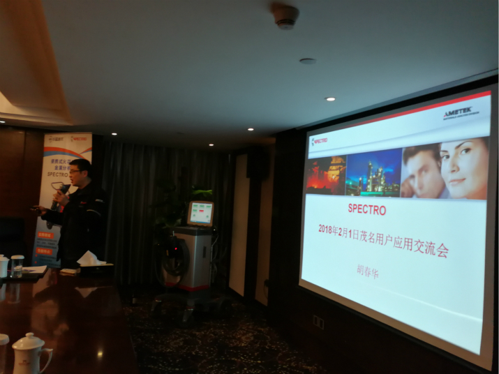 深圳華普通用科技有限公司攜手德國斯派克(SPECTRO)分析儀器公司于2018年02月01日在茂名國際大酒店聯(lián)合舉辦了“光譜儀應(yīng)用技術(shù)交流會”。本次共有9家單位30多人參加了此次交流會。德國斯派克市場總監(jiān)及產(chǎn)品經(jīng)理著重介紹了公司的全系列產(chǎn)品及其應(yīng)用,涵蓋了直讀光譜儀 SPECTROLAB、 SPECTROMAXx, 便攜式/移動式光譜儀SPECTROTEST、SPECTROPORT,等離子體光譜儀SPECTRO ARCOS、SPECTROBLUE,X熒光光譜儀SPECTRO MIDEX、SPECTRO XEPOS以及手持式X熒光儀SPECTRO xSORT等。